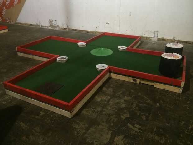 La clase de Pro-laboratorio shop colaboró con la clase de geometría para crear un campo de minigolf de 9 hoyos. Terminamos justo a tiempo para la última semana de clases, y toda la escuela trataron a unas cuantas rondas de minigolf.