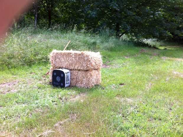 Ahora, enderezar los objetivos contra los fardos de heno. He utilizado manzanas, pero se pueden usar blancos de tiro con arco de papel normal. Si utilizas el papel unos, entonces usted puede poner más alto. Utilizando bloques, tienes que poner en el suelo.