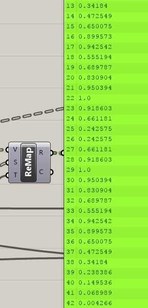 Con el fin de crear una bisagra de enrejado, no queremos saber la curvatura en cada punto, pero el cambio de curvatura en la superficie. Zonas con muy pocos cambios pueden tener bisagras más anchas y menos flexibles, mientras que las áreas con muchos cambios necesitará bisagras más delgadas y más flexibles. Para ello, mida la distancia relativa entre cada valor de la curvatura y luego reasignar esos valores en un rango de 0 a 1. Este modo 0 significa ningún cambio y 1 significa máximo cambio.