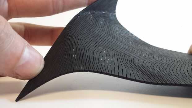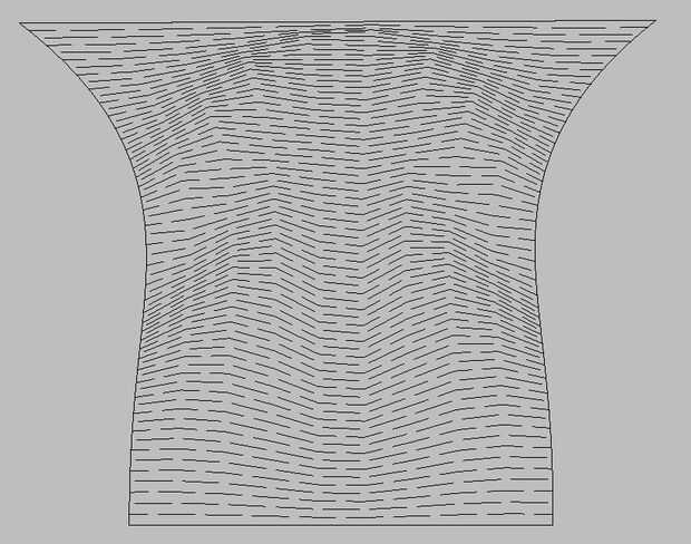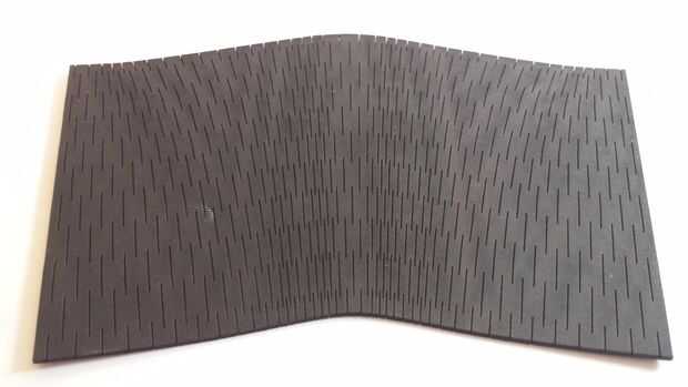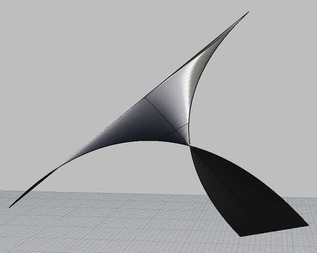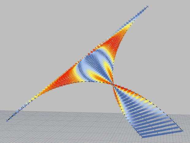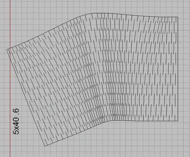 También experimenté con algunas superficies con curvatura Gaussian. De alguna manera, Rhino trata algunas superficies como urbanizable cuando realmente tienen algunas secciones doblemente curvadas (no preguntarme cómo). He intentado el mismo método pero en lugar de medición curvatura gaussiana y los resultados parecía prometedor. Como se puede ver, no flexionen cómo les esperaba. Esto le llevará a investigar un poco más y experimentar.
