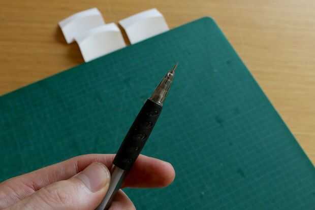 Cualquier número de artículos del hogar se puede utilizar para marcar el papel. Cuchillas o exacta, puntos cardinales, clavos, pernos de seguridad, la lista continúa... Lo importante es elegido no rasgar la superficie del papel o cortar a través de él. Para esto instructable utilizado el extremo de un perno de T en combinación con el cuerpo de un lápiz mecánico.