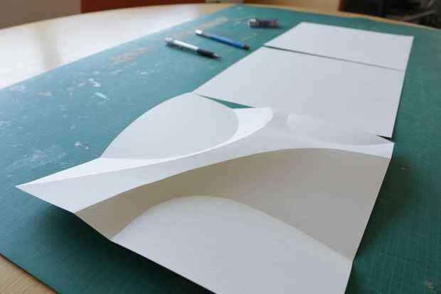 Al hacer los pliegues curvos me parece su mejor utilizar un papel de peso mediano ya que el papel tiende a permanecer en su forma mejor. Para mi pieza usé papel de dibujo Canson Mi-teintes, que está disponible en la mayoría de tiendas de arte.