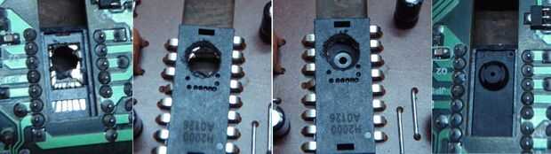 Abra la tapa negra bajo el chip, en el agujero de la Junta. Haciendo presión con un cuchillo en el borde de la cubierta para sacarla.