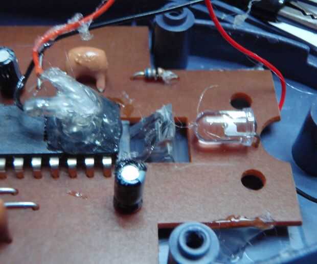Coloque el sensor dentro del agujero en el chip de ratón y hotglue alrededor.