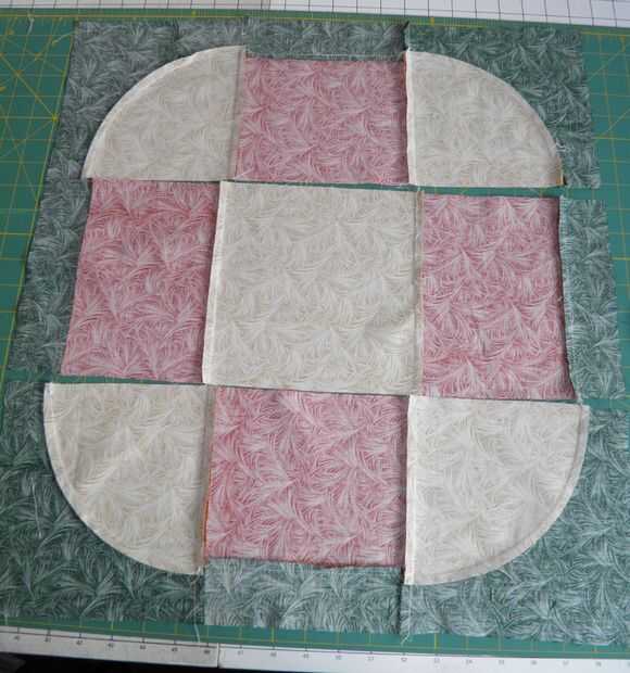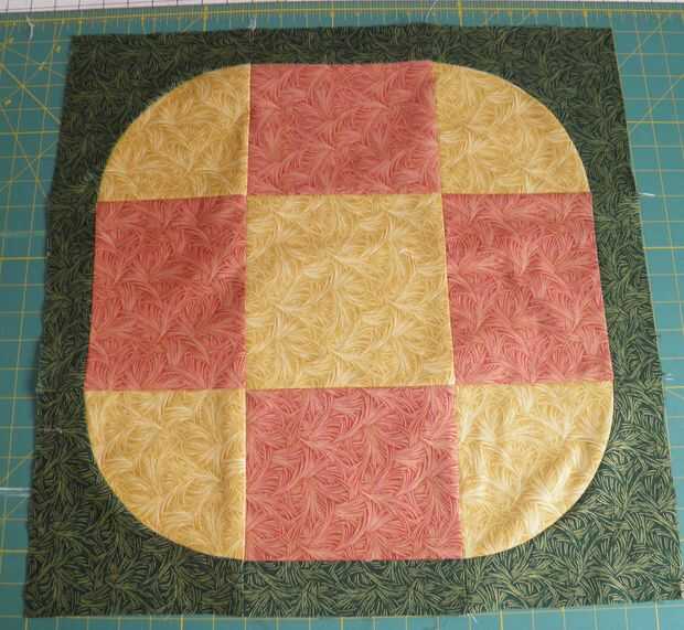 Ahora poner juntos como un parche 9 de acuerdo con el diseño. Asegúrese de que usted anida sus costuras u otro método nos mach costuras.