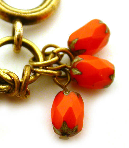 Enrosque un perno de cabeza a través de uno de los granos restantes. Con sus alicates de punta redonda crear un bucle en el perno de la cabeza, corte el exceso de alambre con un alicate. Apartar este cuelgan de grano. Utilizar los alfileres de cabeza y los granos restantes para crear 17 cuelga más de grano.
