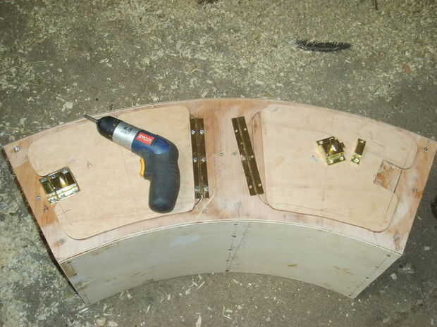 Bisagras en el centro, las capturas en el exterior; Este diseño fue elegido para los lentos días cuando fuera regañones permitiendo a la Ferreter entonces sentarse cómodamente en la parte superior de la caja.