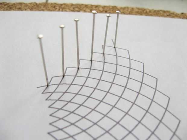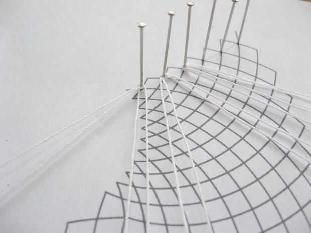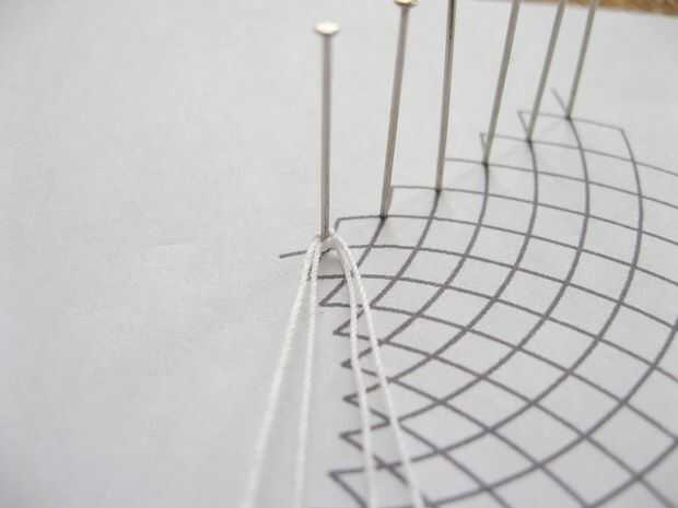 Coloque un alfiler en cada punto de cruz como se muestra en la imagen. (No inicio al final. Voy a explicar por qué más adelante.)