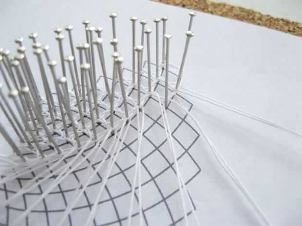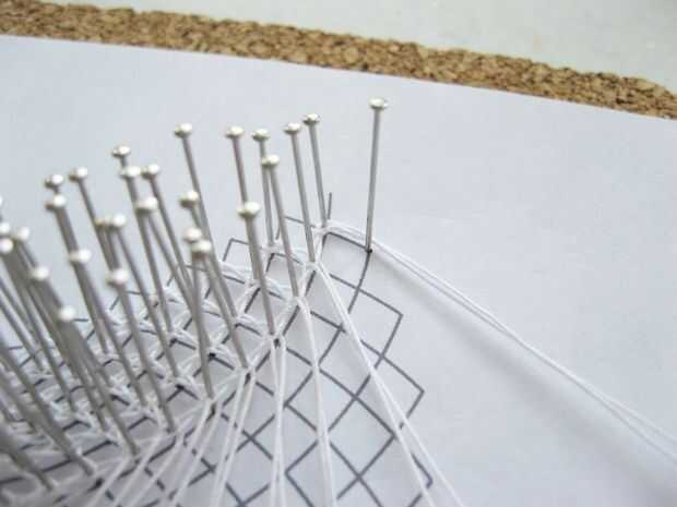 Ver su tensión con cuidado - al final de cada fila tire suavemente de las bobinas para asegurarse de que usted no tiene ninguna holgura en el cordón. Tensión constante hace mejor apariencia de encaje.
