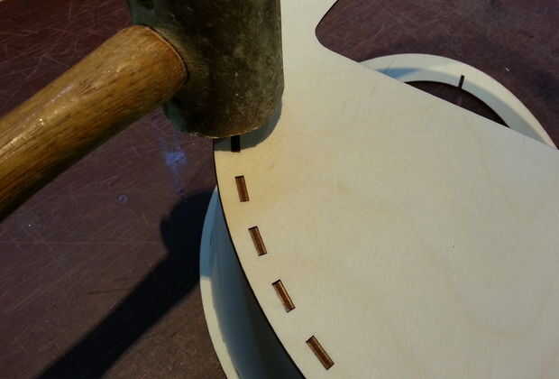 de permanencia óptimo. Un poco de madera pegamento en los dientes y un toque rápido con un martillo hará el truco. Ayuda a alguien más alrededor para sujetar el panel plegado mientras golpee los paneles laterales.