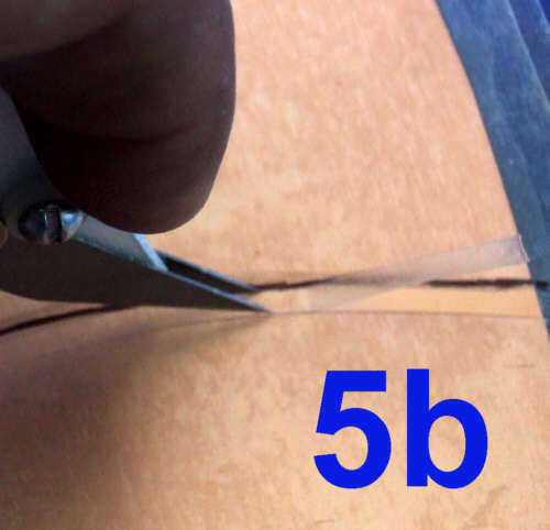 Pic5b muestra cómo el trazador de líneas del estante de vinilo se corta con un cuchillo de hoja doble y se quita una sección larga delgada. Esto se hace siempre que lo desee el cobre para ser grabado al agua fuerte lejos.