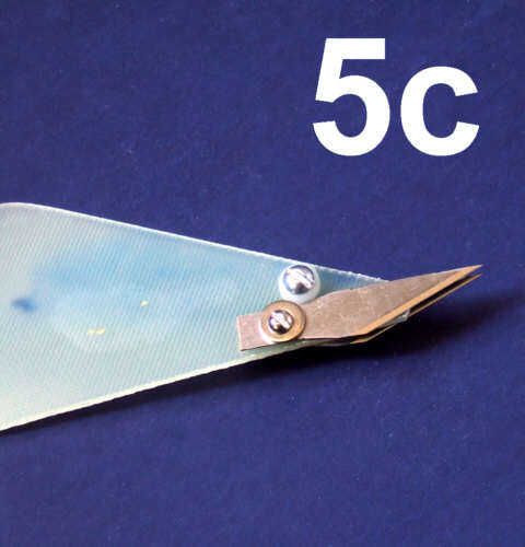 Pic5c muestra el cuchillo de doble hoja que se hace fácilmente empernando en dos cuchillos o exacto a cada lado de 1/16" FR-4 material de placa de circuito que tiene el cobre grabado de.