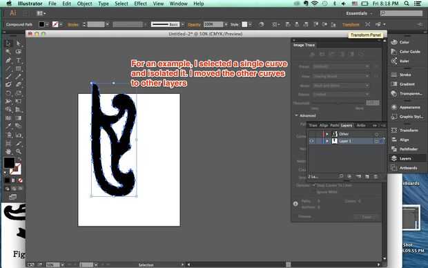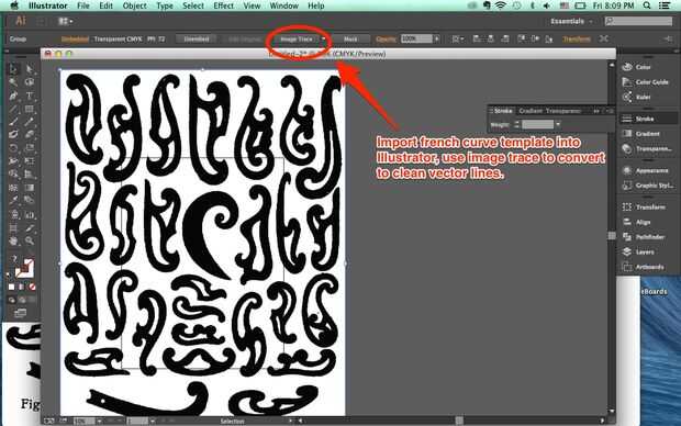 Me importados la imagen de Wikipedia en Illustrator y utilizar la función de calco para cambiar las formas en líneas vectoriales limpias. Esto hizo fácil ordenar a través de y cambiar el tamaño según sea necesario. Puede también omitir este paso y simplemente recortar las formas deseadas de la imagen. He hecho un tutorial detallado de cómo convertí las curvas - ver las imágenes de este paso. También he incluido mi propio archivo de Illustrator con las líneas de vector.