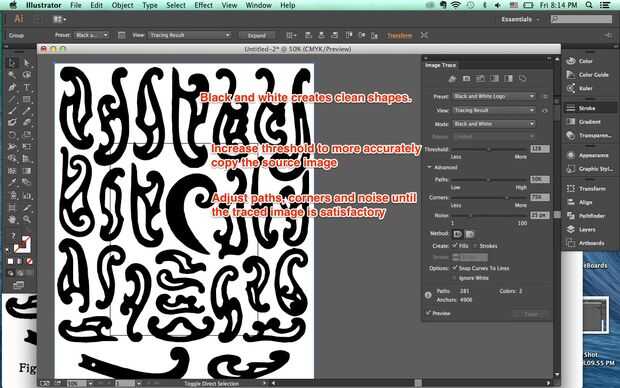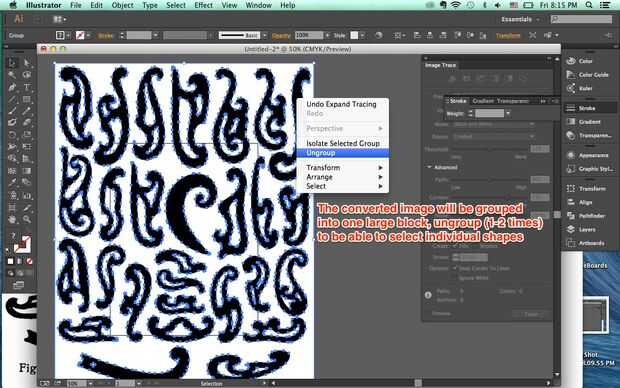 Una vez que las formas que desee aislado, imprimirlas y pegarlas a tus espacios en blanco de madera. Realmente depende del tamaño de su patrón y sus espacios en blanco lo que va a hacer - si un montón de diseño de pequeños proyectos como yo, o para utilizar para el dibujo, el trabajo es probablemente bueno tener algunas versiones más pequeñas. Sin embargo, si va a utilizar para proyectos de grandes muebles o elaboración a gran escala, luego hacerlos más grandes.