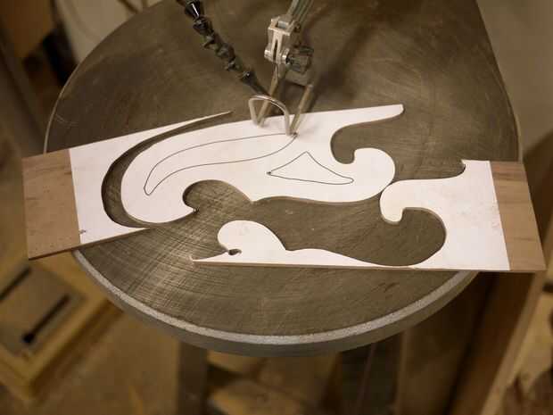 empecé cortando la forma exterior de cada curva. No trato de seguir la curva de todo el camino alrededor, pero corte lejos fuera en varias secciones en lugar de girar y voltear la hoja en el trabajo. Traté de cortar a la línea, pero si me sentí alejarse, traté de pecar de cauteloso y corte en la parte exterior de la línea - yo dejando espacio a la arena lejos más adelante en vez de cortar en mi pieza acabada.