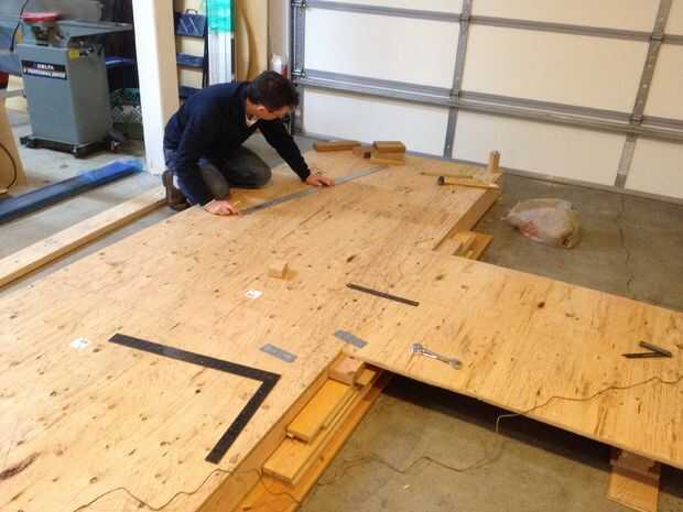 Finalmente montado toda la estructura y coloca a través de dos bancos para hacer una superficie de trabajo seguro en altura de la cintura – mucho mejor que este montaje en el suelo
