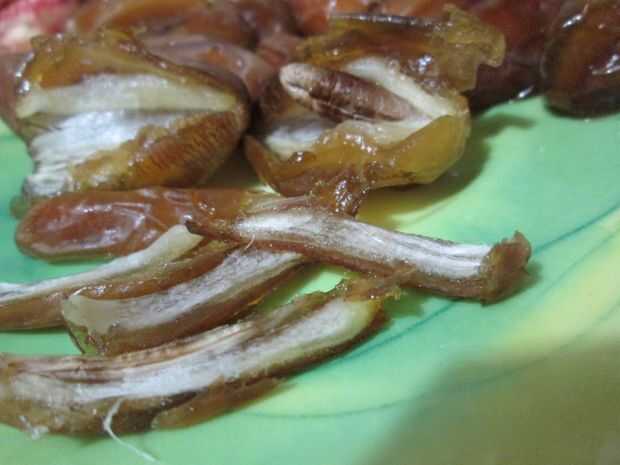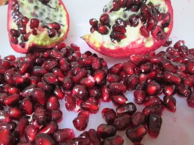 Mientras tanto, la corte de la semilla de la Granada, lavar bien las fechas y rebanadas de fino.