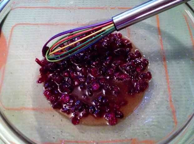 Para la vinagreta: en un tazón grande, combine el vinagre, jarabe de arce, canela (si se usa), sal y pimienta. Batir el aceite de oliva hasta que esté suave. Añadir los arándanos y los deje reposar unos 5 minutos para ablandan los arándanos rojos.