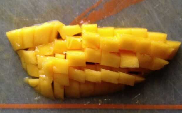 2 tazas de mango picado (encontrar un cuchillo melón hace cortar un mango mucho más fácil).