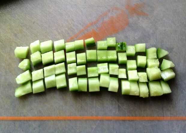 Cuscús israelí con Mango y pepino (1 / 3 paso)