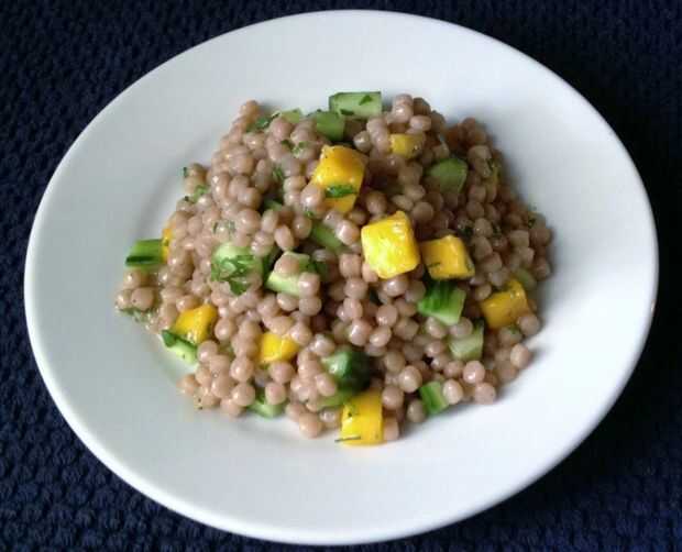 En un tazón pequeño, batir miel, jugo de limón, aceite de oliva 1 cucharada restante, sal y pimienta. Vierte sobre el cuscús; mezclar bien, gusto y ajustar sazón.