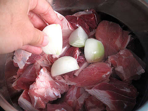 Agregar los vegetales, teniendo cuidado de cortar las zanahorias en las patatas longitudinalmente, en 4 (en el sentido de la longitud también), los chiles.
