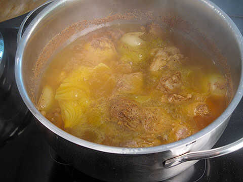 Reducir el fuego a medio y cocine hasta que cae la carne y las verduras estén cocidas.