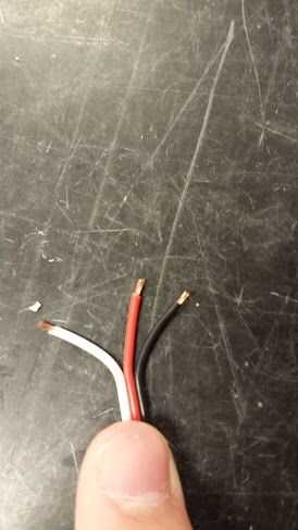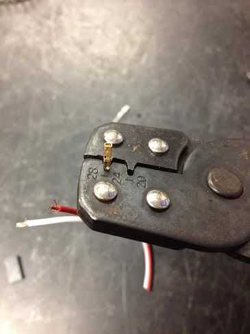 2. Pele los cables una pequeña cantidad (menos que el conjunto superior de los dientes de la encrespadura)