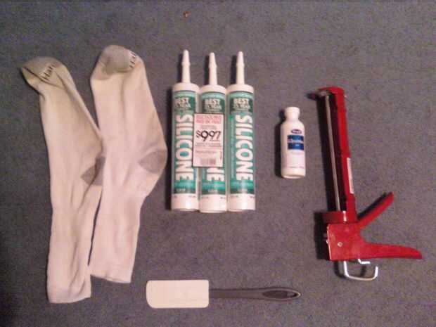 masilla de silicón de 2 tubos (un pack de 3 tubos de 10 dólares en una tienda de hardware, puede que necesite más es sus pies son más grandes después de la mina. Soy un hombre de tamaño 9.5)