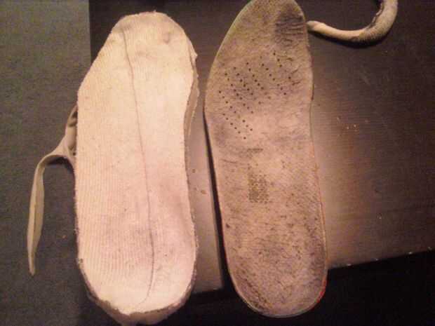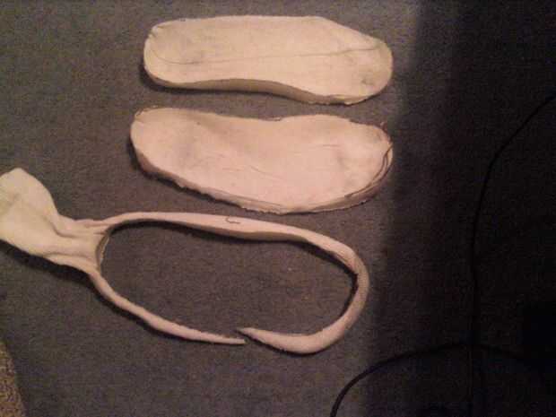 ahora lo tienes cortado al tamaño correcto deberás tapper un poco los lados para que el fondo sea sólo un poco más estrecho y la parte superior. Esto es así cabe mejor en el zapato.