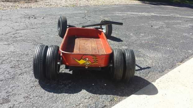 esta es la actualización en mi proyecto de radio flyer wagon.  El marco es más o menos de la forma de hacer todo lo que necesito hacer ahora es conectar un cuerpo a él.