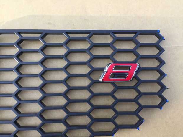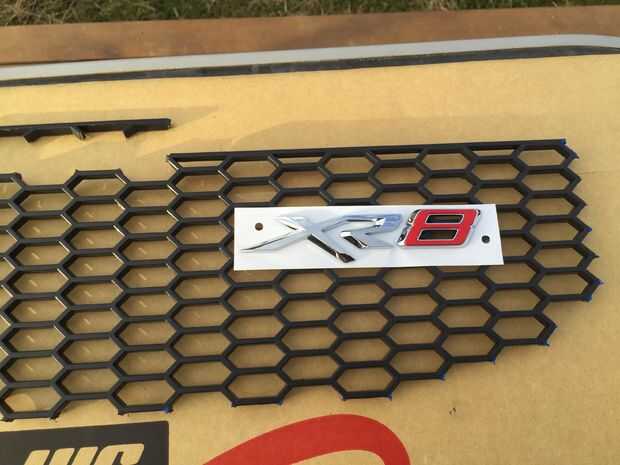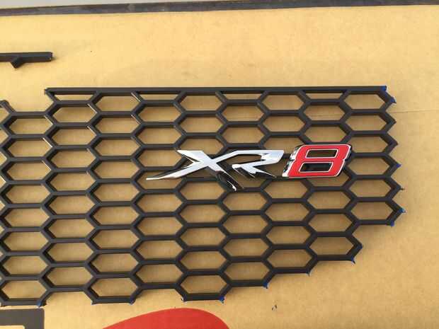 Desembale la divisa XR. Vendrá con su propia cinta de doble cara, esto mantendrá lo suficientemente fuerte por sí solo, pero algunos puntos de Sikaflex pueden utilizarse como una medida doble para asegurar que se mantiene en su lugar. Tenga en cuenta donde he colocado la insignia y cómo alinea con las barras horizontales sobre la malla.