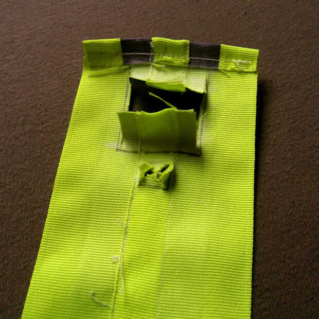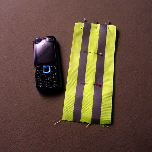 3. marcar y cortar las aberturas de las zonas del reproductor de MP3/teléfono móvil que le da acceso desde el exterior del brazalete.