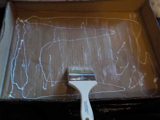 No te preocupes, es realmente feo cartón en este punto, pero se verán mucho mejor pronto. Cuelgue a la tela sin apretar la caja y recorte lo suficientemente grande como para cubrir el interior de la caja y el interior y exterior lados, pero no el fondo. Saque una bolsa de basura o lona en este momento porque la parte del nido puede ser un poco desordenada. Agregue el pegamento a la cartulina y estirar finamente con cepillo. Si el pegamento es de espesor puede supurar a través de la tela o de papel. Pegar a la tela a la caja, suavizar el fondo y los lados. Las esquinas son más fáciles si usted corta las aberturas de alivio hacia abajo de la tela del interior esquina en la parte inferior de la caja. Cierta superposición de tela se producen en las esquinas, pero trate de no hacer a voluminosos.