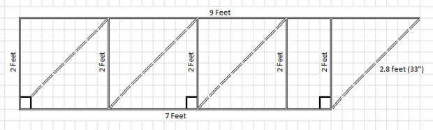 Longitud: 9 pies (contra la pared), 7 pies (el borde)