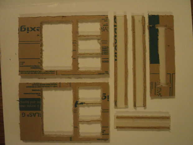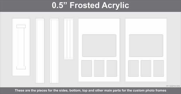 Entre las fotos de este paso, verá los diagramas de las piezas que muestran la mayoría de los tamaños y cantidades que se utilizaron en la creación de estos marcos de fotos personalizados. Algunas de las partes que no veo son las fotos que fueron en los marcos y el papel de construcción negro utilizado en detrás de las fotos para bloquear cualquier brillo en caso de colocar cerca de una fuente de luz.