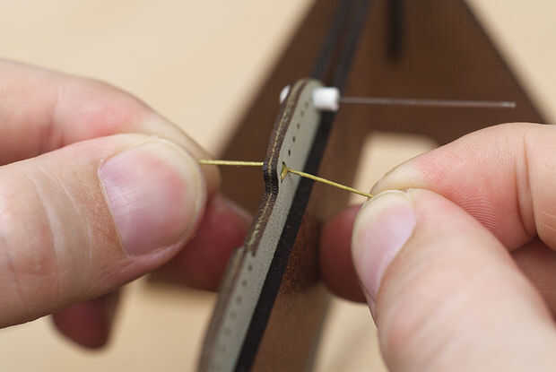 Usted debe notar que la puntada tiene un ligero ángulo hacia abajo, y siguiendo que estas etiquetas mantendrán coherente y atractivo para toda la juntura. Una vez que el segundo subproceso es a través de, ambos hilos cerca de la costura del gancho agarrador y tire de ellas tenso con una cantidad media de la presión. Manteniendo la presión constante en este paso también le dará la costura más consistente.