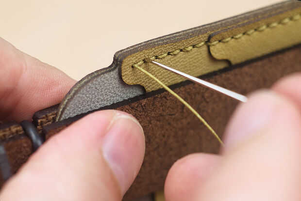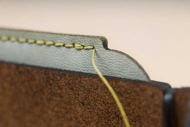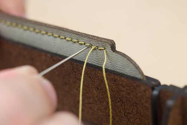Hacia el otro lado de la costura pony y ahora pasar el hilo de la misma a través del agujero siguiente yendo hacia atrás en la misma forma que el primero. Usted haya terminado con este hilo.