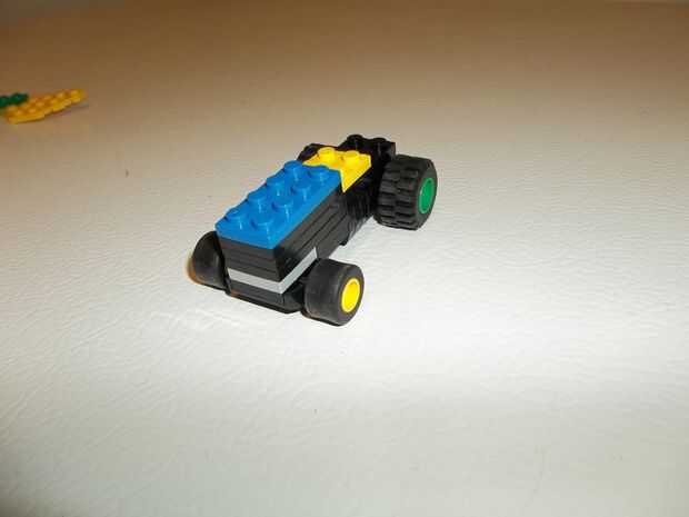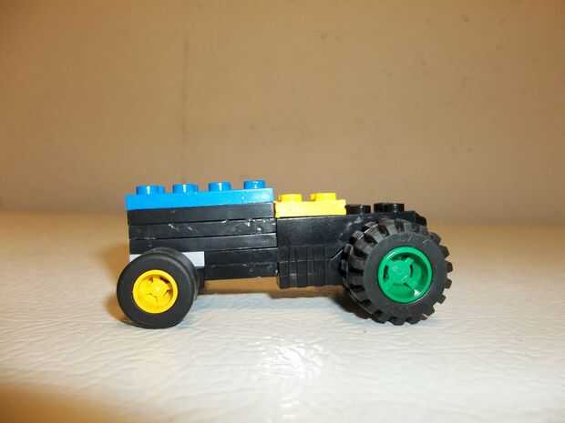 Esta pieza principal de pasos es el motor trasero de viento que se une a las ruedas verdes. El motor puede ser sustituido por unas piezas planas y un árbol. De todos modos el motor apilados para arriba con cuatro pedazos.