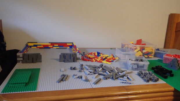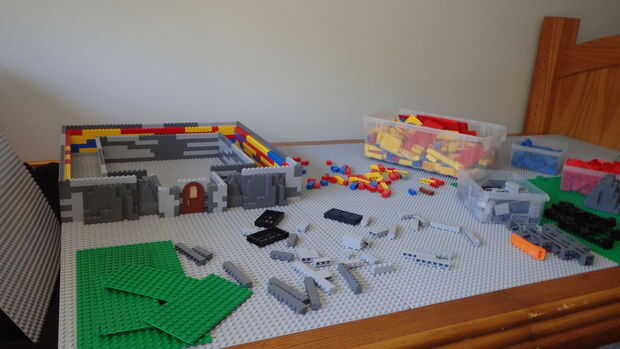 La segunda fase de mi generación era crear la base de la fortaleza interior y la zona de la mazmorra. Usé ladrillos de colores para la base principal, luego he añadido algunos ladrillos grises para crear la apariencia que desea. Después de la Fundación principal en su lugar, he añadido las paredes del calabozo y la puerta a la mazmorra.