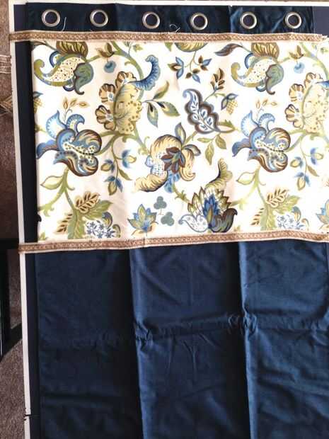 Una búsqueda rápida de "paneles de bandas" o "tratamientos de ventana en bandas" dará muchas opciones de donde ubicar el relleno. He intentado visualizar diferentes colocaciones buscar poniendo una sección de la tela y recortar en la parte superior los paneles comprados.