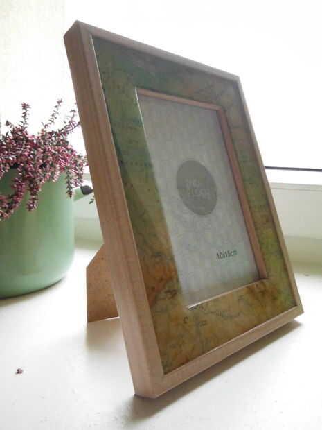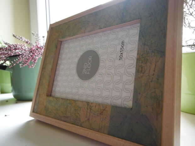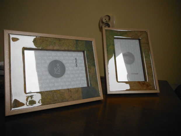 En primer lugar, encontrará un marco decente con una sección ahuecada alrededor de la foto área de mantenimiento. Entonces, mida esa zona con una regla, trace y corte su sección del mapa (o cualquier otra imagen que se desea) y asegurarse de encaja perfectamente en el marco. A continuación coge el palillo del pegamento y pegue la sección del mapa a su marco. Ahora, sólo mezclar la resina y viértala sobre la sección mapa de embutidos. Permita que cure durante 24 horas aproximadamente. La resina no sólo sellará el mapa y lo impermeable, pero también le da un brillo! Ahora todo lo que tienes que hacer es poner una imagen y eso es todo!