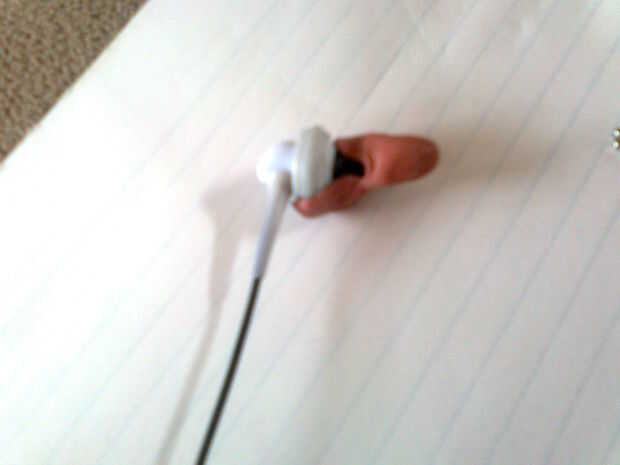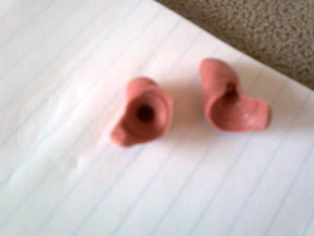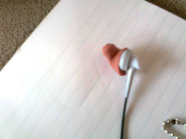 En mi primer intento para esta construcción, verá que se puede ver la base negra de la almohadilla. Esto es malo, que esto significa que el auricular descansa en el lado del conducto auditivo externo y no en el medio el material.