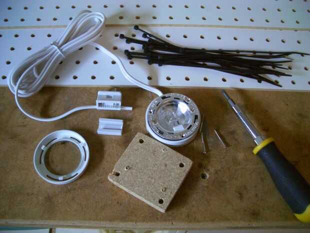 Diminutos LEDs emiten mucha luz, pero la luz mal dirigida. Haciendo su propio reflector no dar un resultado limpio en la mayoría de los casos, así que ¿por qué no reutilizar un reflector?Me enteré GU10 halógenas son fáciles de desmontar y fácil de re