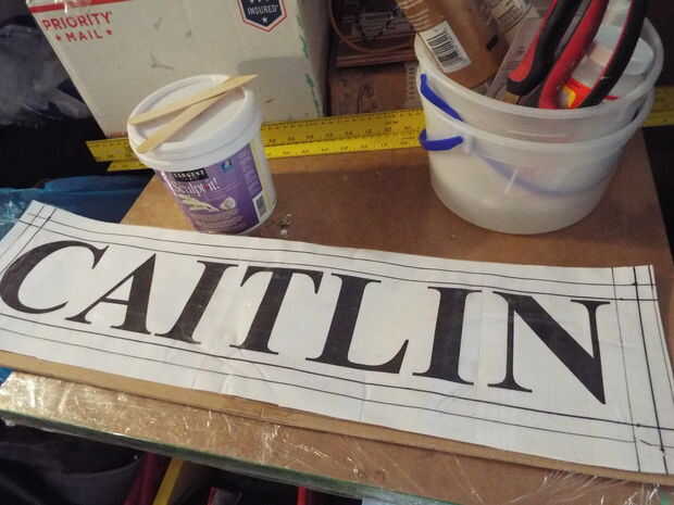 Una tabla rígida o tablón que será la base subyacente para su proyecto. Debe ser cortado al tamaño de su diseño final. Reconstruye más retazos de la revestimiento MDF que había utilizado para las muestras de calle personalizada. He utilizado palillos de madera como refuerzo tacos y había intercalado la costura a ambos lados con revestimiento de papel tirado de un pedazo de cartón corrugado. Mi tamaño de tablero de mosaico es aproximadamente 27 x 7 pulgadas.