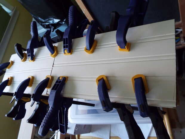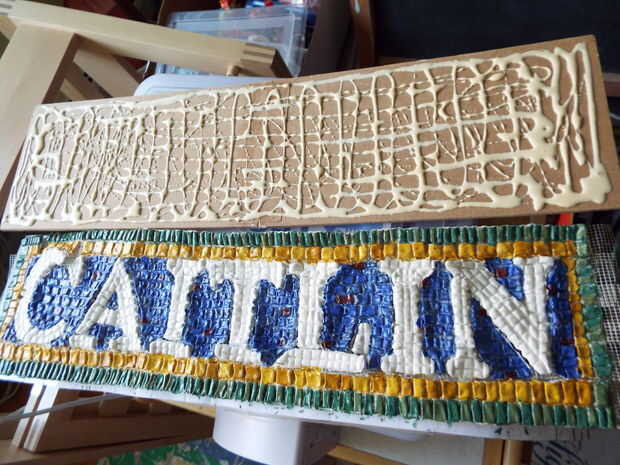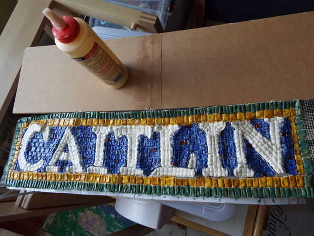 Recomiendo colocar una hoja de plástico sobre el mosaico para evitar que se pegue a las placas de sujeción. Lo había entregado varias veces que las abrazaderas en su lugar y el pegamento se filtraron a través en lugares al frente.