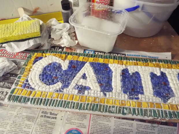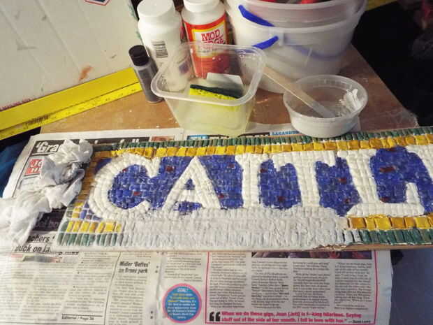 Le di mi mosaico una extra capa de Mod Podge para ayudar con el proceso de rejuntado.