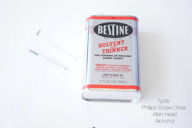 Alcohol o producto de limpieza similar será necesario. Prefiero Bestine. Puede probar antes de aplicar totalmente. Productos químicos como Goof Off pueden destruir los materiales.