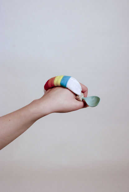 Nuestro objetivo era hacer una cuchara medida para nuestro cliente, una niña de edad de 16 años con parálisis cerebral, que tiene una edad mental de dos. Cuando se come, a menudo pierde su cuchara cuando recogiendo a algunos movimientos espásticos. Hay un montón de cucharas existentes tratando de resolver este problema, pero nuestro cliente también no le gusta la sensación de plástico o algo que es muy muy fuerte.