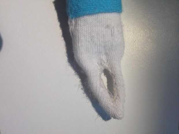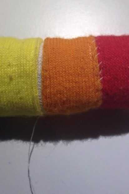 Además no estábamos contentos que todavía podía ver el calcetín blanco entre los colores diferentes, por lo que también habían cosido a éstos junto con la aguja (Foto 3).